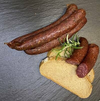 Wagyufleisch, Kochsalz mit Konservierungsstoff E250, Gewürze, Glucosesirup, Dextrose, Antioxidationsmittel: E300 L-Ascorbinsäure, Säureregulator: E575 Glucon-delta.lakton, Salamikulturen, Rauch